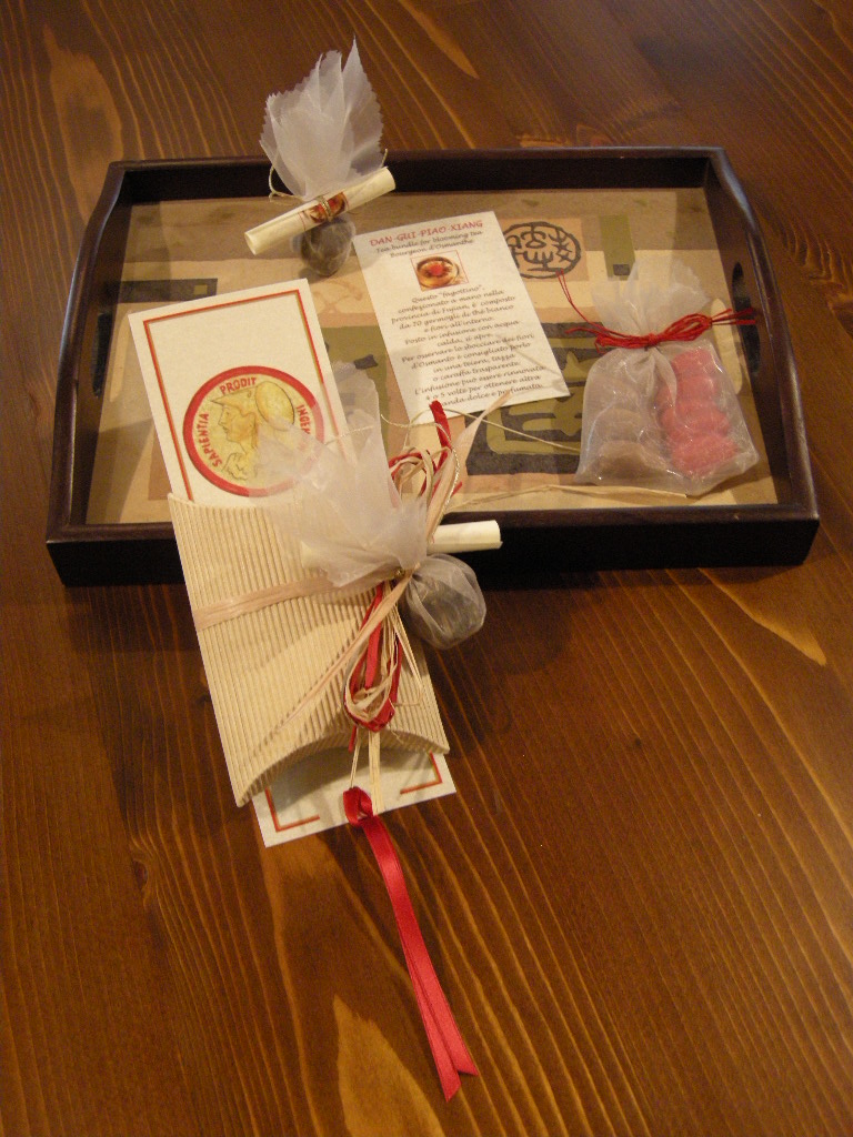 Un autre événement familial, que j'ai été agréablement engagé. Aujourd'hui, dans mon rôle de marraine, J'ai assisté à la remise des diplômes de mon “Filleul”. Pour la ’ fois que j'ai peint le signet, choisis les confettis * et, pour donner de la saveur juste à ce moment très spécial, Je suis entré dans un sachet de “Dan Gui Piao Xiang”; J'ai ensuite créé la feuille d'instructions du thé très spécial parce que c'est une véritable cérémonie: avant vous déguster le goût, Il aide à “Bloom” fleurs dedans … tout comme voir un enfant devenu adulte et de montrer son talent … que j'ai vérifié pendant des décennies dans le rôle de marraine ce professeur … une vraie magie!